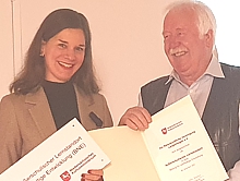 Viktoria Werder vom Niedersächsischen Kultusministerium übergab die Urkunde „Außerschulischer Lernstandort Bildung für nachhaltige Entwicklung (BNE)“ an Hans-Jürgen Ratsch, dem 1. Vorsitzenden der NVL.